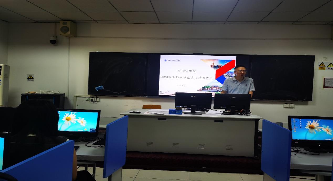 为确保外国语学院毕业实习工作的顺利开展,6月11日,外国语学院在文华楼2-505召开了2023级专科生毕业实习动员大会,实训管理中心主任傅勇,毕业实习负责老师陈姣姣及2023级全体专科学生参加了此次会议。