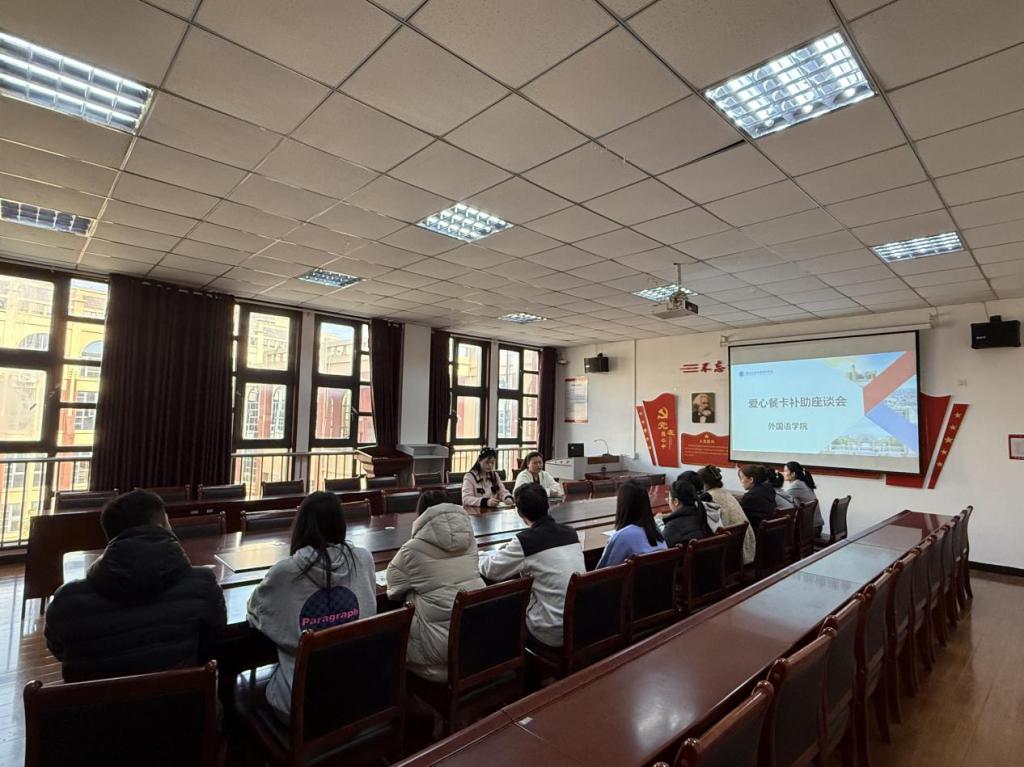 (文/张一琪 图/李朝迪)为进一步落实精准资助政策,引导受助学生合理使用资助资金,传递学校关怀与社会温情,10月31日,外国语学院在文华楼2-413会议室组织召开“爱心餐卡”受助学生座谈会。外国语学院分团委副书记李朝迪、资助专员张一琪及辅导员蔡新月出席会议,与全体受助学生面对面交流,共话成长、共解难题。
