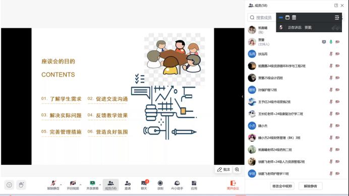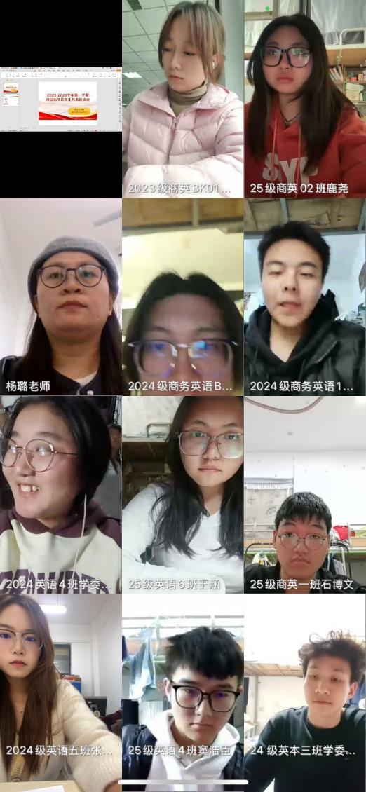 (图/文 贾蕾)为进一步加强师生之间的交流,精准把握学生的学习需求,提高教学质量,外国语学院于第七教学周(10月27日至10月31日)召开多场学生座谈会。座谈会按不同专业、年级,分别召开,涉及不同主题,搭建起高效的师生沟通桥梁。系列座谈会得到了学院领导班子的高度重视,院长孙丽娟、副院长张国昌、各教研室主任、督导组组长贺慧、学院督导员及各教学班学生代表分别参加了相应场次的座谈会。座谈会围绕学生的学习体验、教学方法的有效性、课堂管理等核心议题展开深入讨论,针对性强,成果显著。