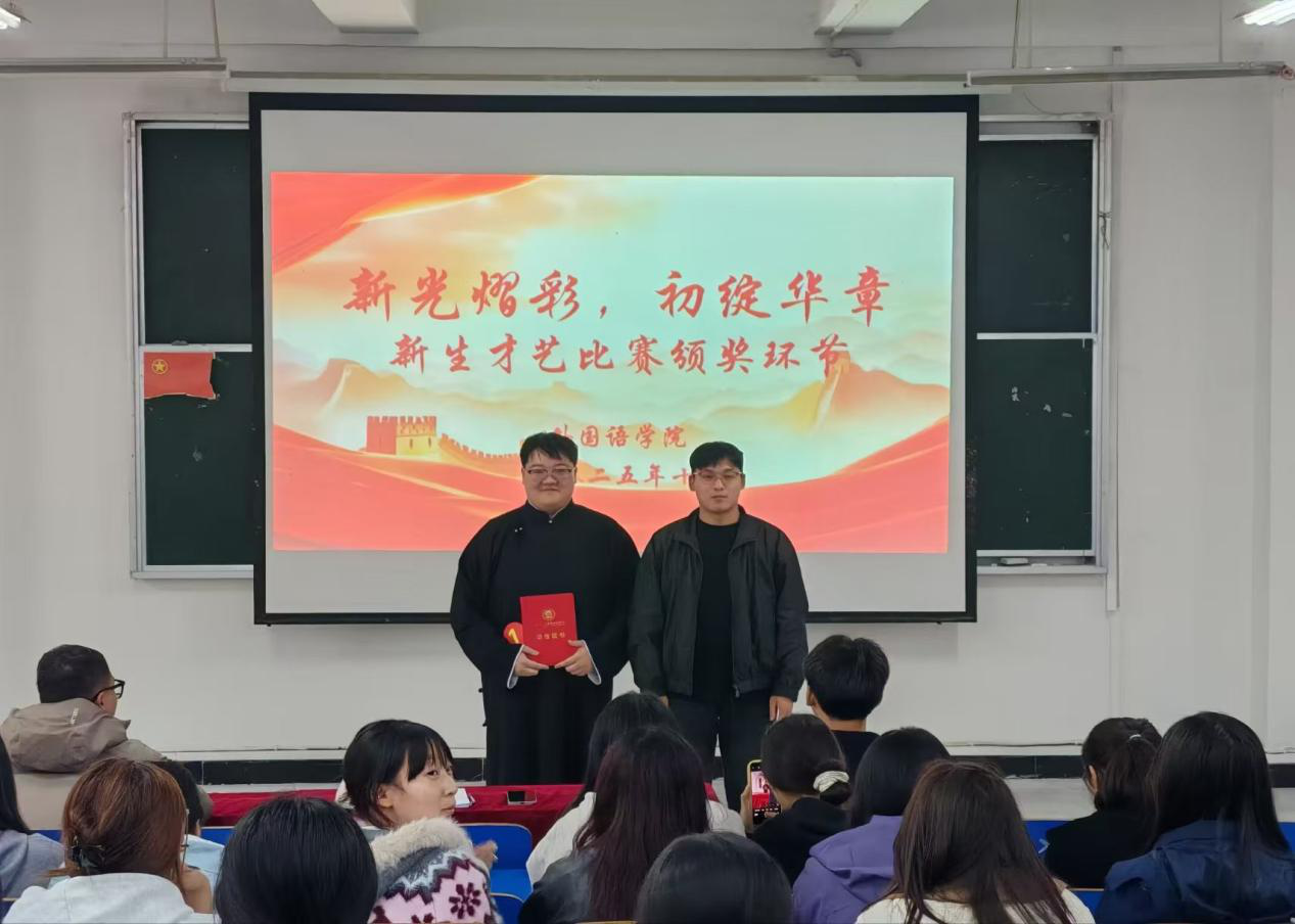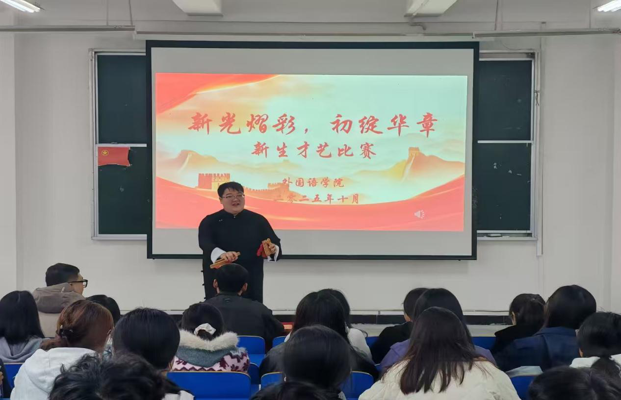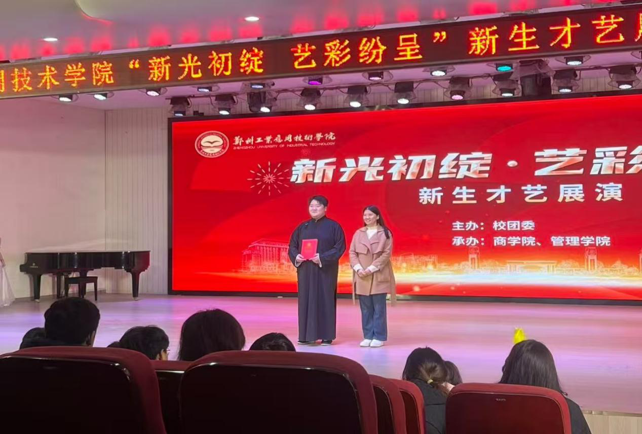 (图/郭姿汝 文/姜林妤)为全面展现2025级新生的艺术才华与青春朝气,持续深化校园精神文明建设,郑州工业应用技术学院“新光熠彩,初绽华章”新生才艺展演于11月6日下午在东校区音乐厅圆满落幕。我院2025级学子郭常睿凭借快板作品《天安门广场看升旗》的精彩演绎,以扎实的艺术功底、真挚的情感表达斩获大赛“一等奖”,为学院赢得荣誉。