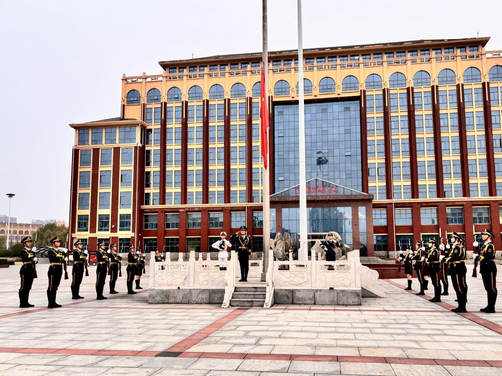 晨光熹微,行政管理中心广场庄严肃穆。伴随着雄壮的《义勇军进行曲》,鲜艳的五星红旗冉冉升起、迎风飘扬。全体人员身着整齐服装,昂首肃立,向国旗行注目礼,深切表达对祖国的无限崇敬与热爱之情,嘹亮的歌声中饱含着外院学子为国家发展不懈奋斗的坚定决心。