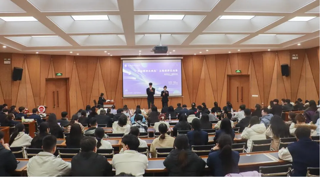 决赛现场气氛庄重热烈,各院师生代表到场观赛。比赛中,我院学子马一迪围绕校训内核,结合自身专业学习与成长经历,以生动的表达诠释了“励学敦行明理至善”的实践意义,展现了外院学子对校训精神的真学真悟。