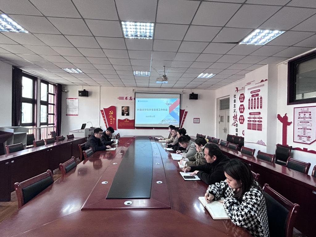 (图文/史宇轩)为深入贯彻落实立德树人根本任务,压实学生管理责任链条,筑牢校园安全防线,持续推进学风建设走深走实,昨日,外国语学院于11月17日召开学生管理工作例会。外国语学院党委书记王晓龙、分团委书记刘星显、全体辅导员参加会议,会议聚焦学生安全稳定与学风建设两大核心任务,对“两进三查”工作机制及日常学生管理工作作出全面部署。