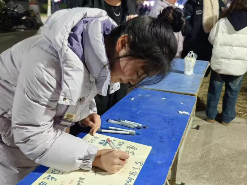 外国语学院积极开展多样实践活动,为学生搭建表达与互动的平台。学院组织“新年新愿”活动,学生们在纸上写下对新年的期许与憧憬;“与我击掌”活动,以充满活力的互动形式传递正能量;“给自己的一句话”活动,让学生们在纸条、树叶甚至特色纸箱上书写对自己的鼓励与寄语。这些实践活动形式新颖、参与性强,鼓励学生们勇敢表达内心想法,在互动中增进交流、收获成长,切实丰富了学生的校园生活,助力学生在实践中提升自我、感悟生活。