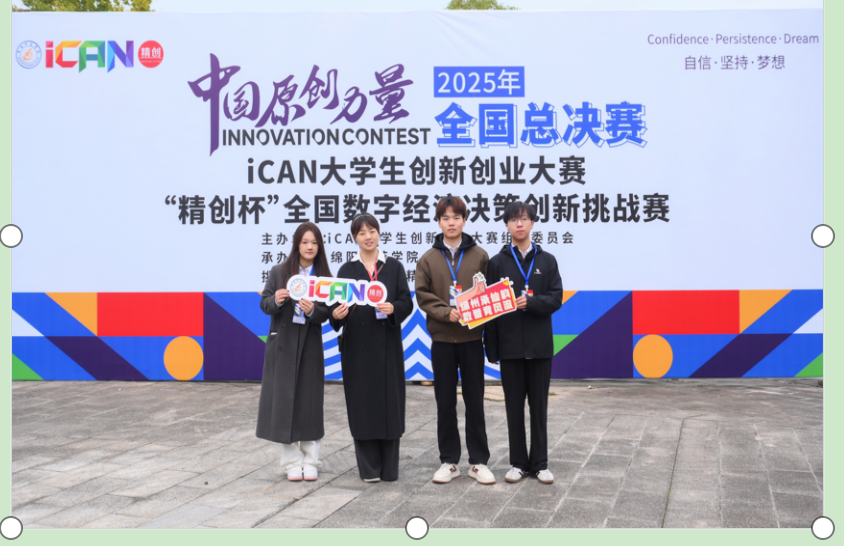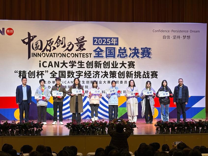 (图/文 张金宴)近日,2025年iCAN全国大学生创新创业大赛数字经济决策创新挑战赛全国总决赛在四川绵阳落幕。我院学子不负众望,首次斩获国家二等奖1项,三等奖1项,同时,还斩获省级二等奖1项,省级三等奖1项,荣获数量与质量均创数字商务领域新高,为学校与学院赢得重磅荣誉。