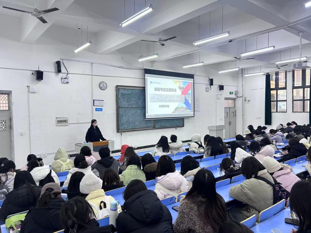 (文/崔淑画 图/孙禹琳)为进一步强化考风考纪建设,引导学生树立诚信应考理念,营造公平公正的期末备考氛围,外国语学院全体辅导员面向学生召开诚信考试主题班会,为即将到来的期末考试筑牢思想根基。
