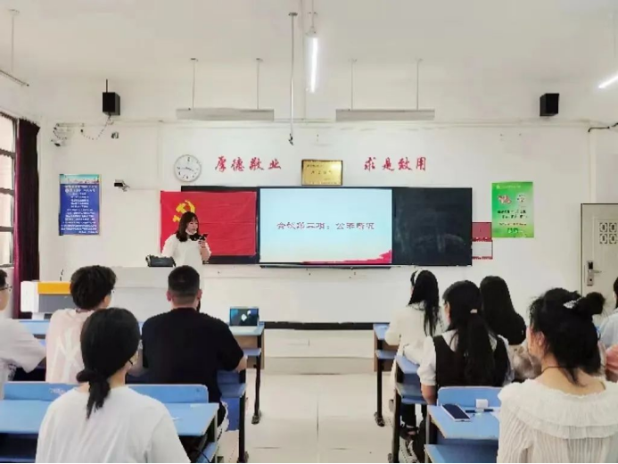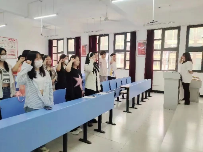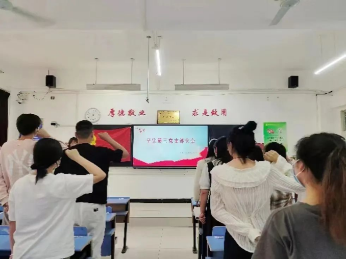 为响应党的号召,吸收更多有为青年加入党组织,外国语学院学生第三党支部于5月23日15:30开展接收预备党员大会,本次会议由支部组织委员孙依华同志主持召开,支部书记蔡新月同志和全体党员参加。