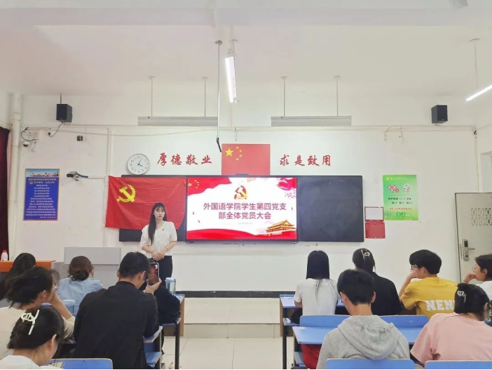 为响应党的号召,吸收更多有为青年加入党组织,为组织培养更多优秀党员,外国语学院学生第四党支部于5月23日16:00在文华楼2-214召开党员大会,讨论是否接收龙文硕等10位同志为预备党员的问题。该会议由支部组织委员赵紫因主持,支部书记赵弘和全体学生党员参与。