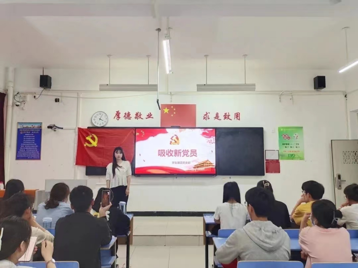会议严格按照党组织接收预备党员的程序进行。首先,赵紫因对龙文硕等10位同志确定为预备党员后的公示、政审及召开党内外群众座谈会情况进行汇报。紧接着,由发展对象们依次向党组织汇报自身对党的认识、入党动机、个人经历以及在校表现。随后,入党介绍培养人根据发展对象们在培养考察时期的表现发表讲话,认为他们入党动机端正,在各方面都充分发挥了入中国共产党党员应具有的模范带头作用,符合党员发展条件。最后,经正式党员无记名投票形成决议,大会一致同意接收龙文硕等10位同志成为中共预备党员。