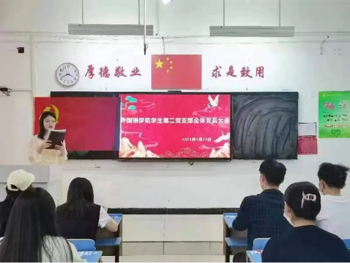 为进一步加强学生党组织的建设,做好本年度学生党员发展工作,外国语学院学生第二党支部于5月23日下午15:40在文华2-211召开接收预备党员大会,该会议由组织委员崔林瑞同志主持,支部书记王玉洁同志和全体学生党员参与。