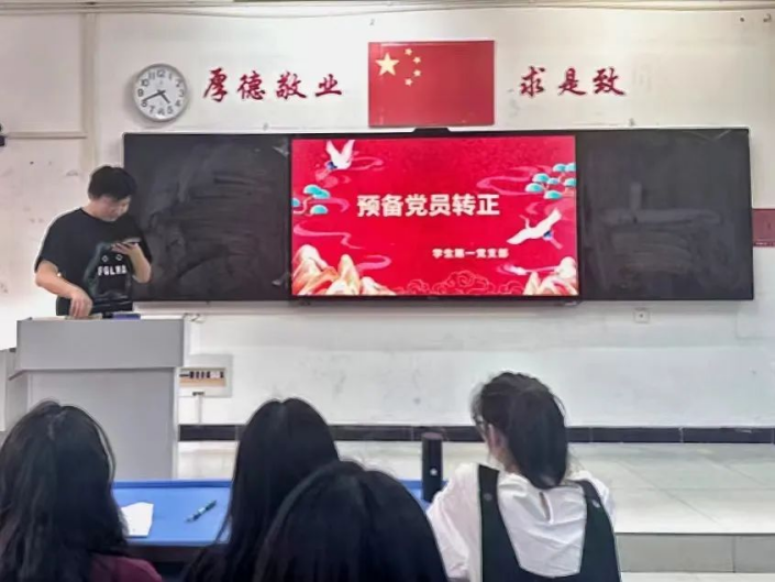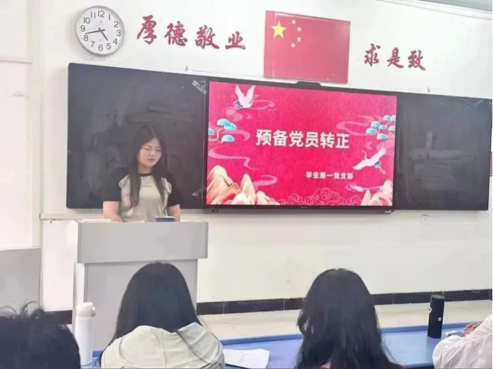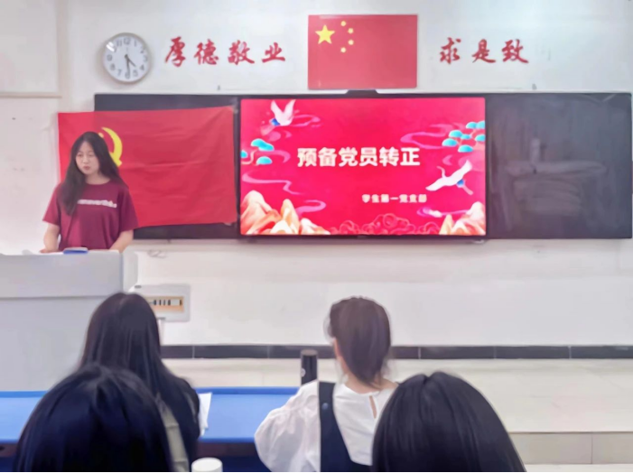 外国语学院学生第一党支部于5月30日下午16:00召开了预备党员转正大会。本次会议由支部组织委员滕骏同志主持,支部书记蒲晶晶同志全体学生党员参加。