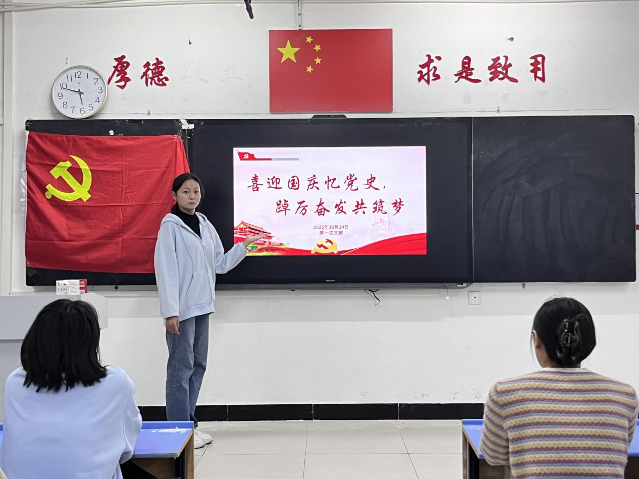 活动伊始,岳学华同志以“国庆与党史的交融记忆”为题,结合历史文献与鲜活案例,讲述了新中国成立以来的发展历程,重点阐释了党在不同历史时期引领人民奋进的核心使命,让在场成员深刻感悟到“没有共产党就没有新中国”的真理力量。接着,岳学华同志围绕党史重大事件、国庆相关历史背景等内容设置题目,在现场开展了“党史知识互动问答”环节,成员们积极抢答、互动热烈,进一步巩固了党史知识,交流学习感悟,激发了主动学习党史的积极性。大家纷纷表示,此次活动不仅深化了对党史和国庆意义的理解,更坚定了理想信念。最后,岳学华同志作总结:未来将以更饱满的热情投入到学习和实践中,立足专业优势,将爱国情、强国志转化为报国行,为实现中华民族伟大复兴的中国梦贡献青春力量。