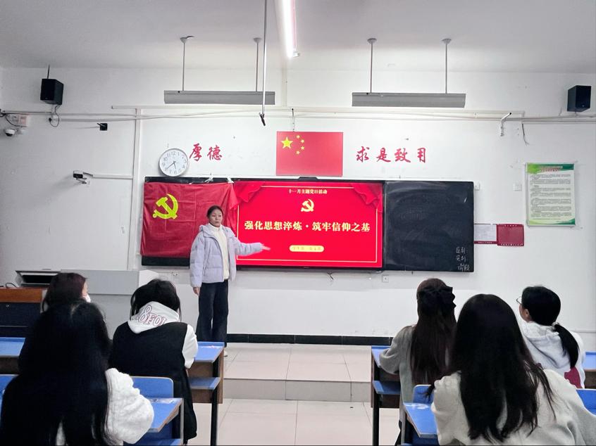 (文图/李怡涵)为深入推进党员思想建设,引导党员同志以学铸魂、实干担当,外国语学院学生第一党支部于11月11日17:40在文华2-216组织开展以“强化思想淬炼 筑牢信仰之基”为主题的党日活动。本次活动由支部支部组织委员岳学华同志主持,支部全体党员同志参加。
