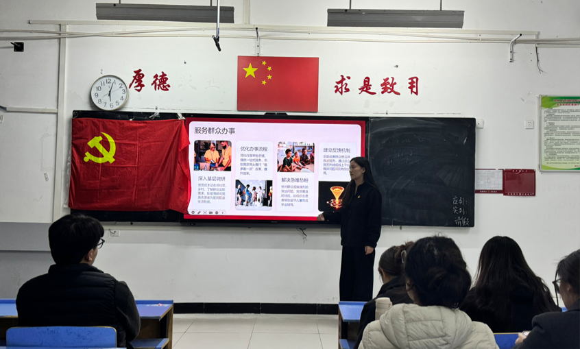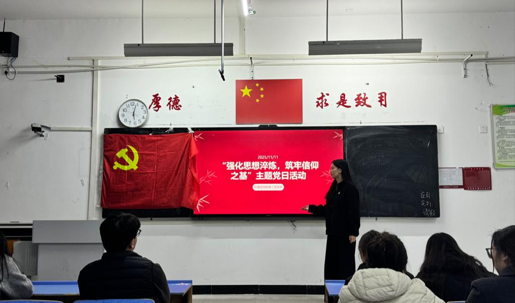 (文图/李怡洁)为引导全体党员深化理论武装、坚定理想信念,切实把信仰力量转化为履职尽责的实际行动,外国语学院学生第二党支部于11月11日18:00在文华2-216组织开展“强化思想淬炼,筑牢信仰之基”的主题党日活动。本次活动由支部组织委员花晨丽同志主持,支部全体党员同志参加。