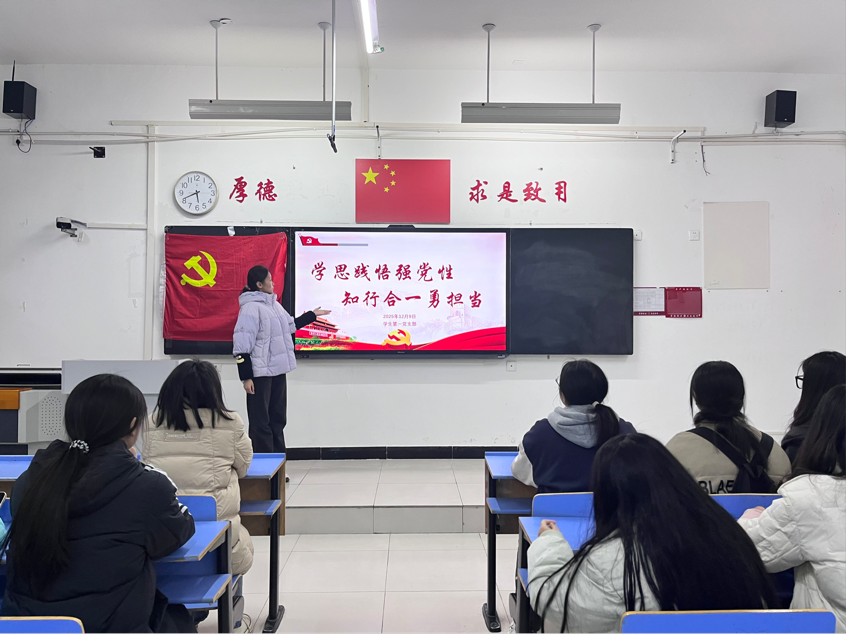 (文/吴彤 图/江梦婷)为深入强化党员党性修养,引导学生党员将理论学习与实践担当相结合,切实筑牢理想信念根基,外国语学院学生第一党支部于12月9日17:30在文华2-216组织开展以“学思践悟强党性 知行合一勇担当”为主题的党日活动。此次活动由组织委员岳学华同志主持,支部全体党员参会。