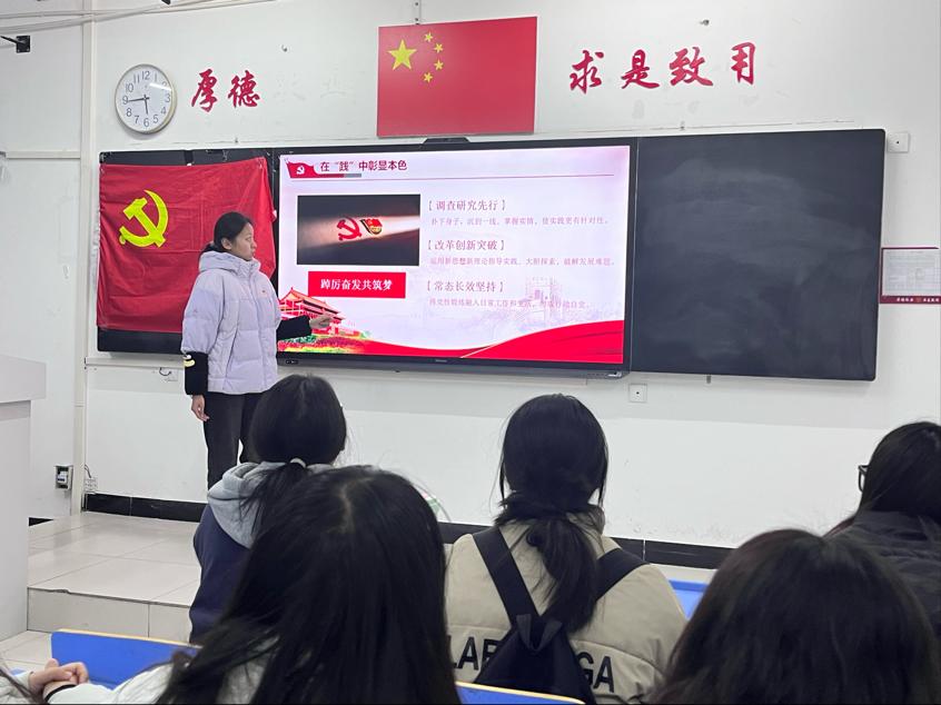 活动伊始,岳学华同志带领全体党员重温入党誓词,铿锵有力的宣誓声坚定了大家不忘初心、牢记使命的政治信念。随后,活动围绕“深学细悟、静心沉思、躬身实践、感悟升华”四大板块展开,组织党员学习党的创新理论、党章党规和党史新中国史,引导大家原原本本学、联系实际学,对照理论党章反思不足、找准定位,深化党性认知。学习研讨后,党员结合自身经历交流感悟,纷纷表示将立足专业学习、志愿服务等岗位担当作为,以斗争精神直面挑战。最后,岳学华同志作总结:此次活动既是一次深刻的思想淬炼,也是一次务实的行动动员,希望全体党员把学习成果转化为实干力量,以初心践使命,以担当显作为。