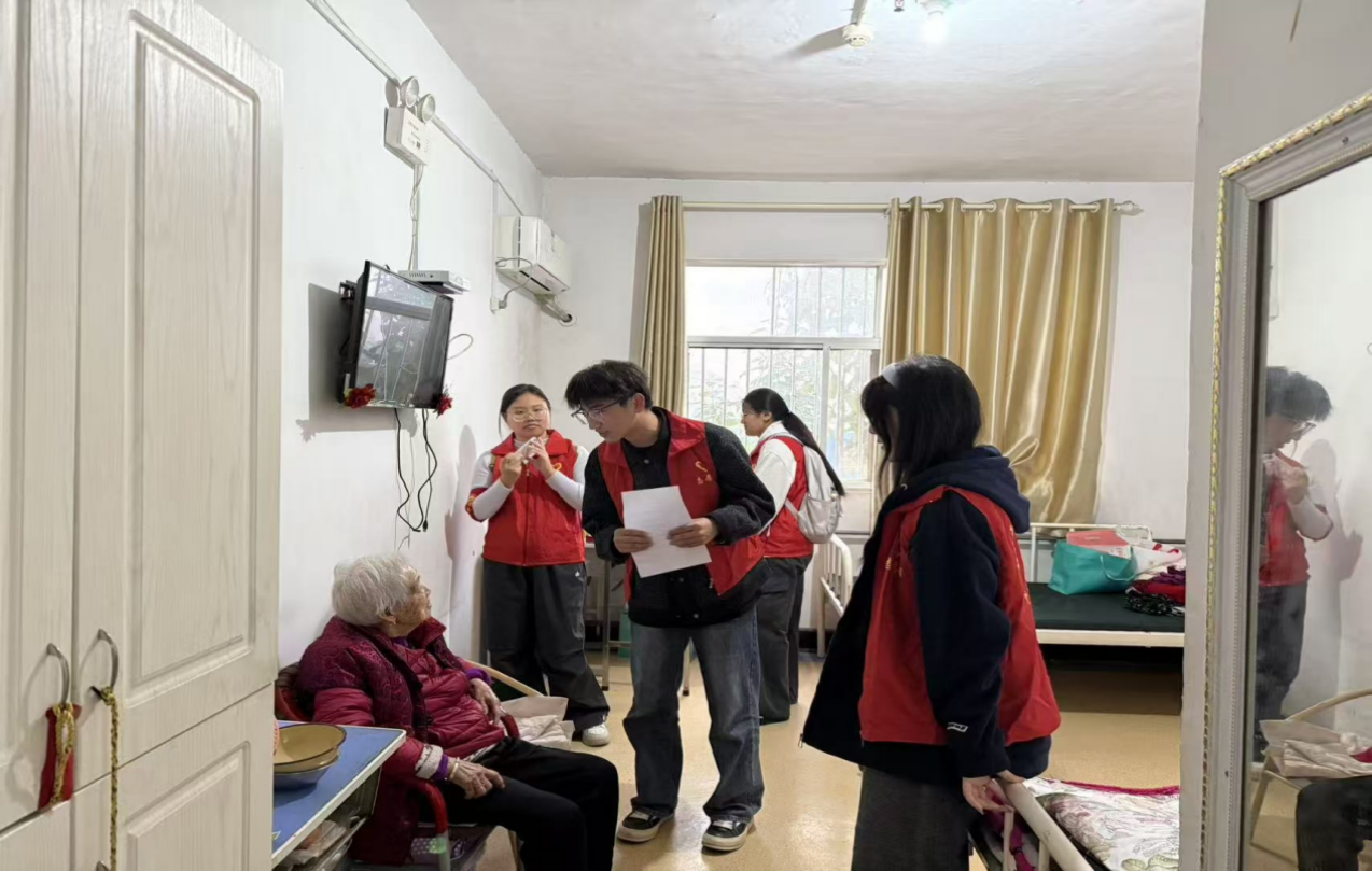 (文/马诗怡 图/李怡博)10月25日,外国语学院2025级英语(BK)01班的志愿者们走进福缘老年公寓,开展了以“情暖养老院,陪伴守夕阳”为主题的志愿服务活动,用实际行动为老人们送去温暖与关怀。