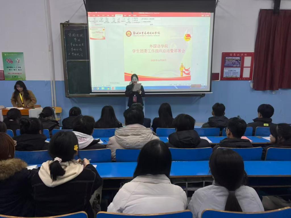 (文/李勉 图/郭姿汝)为系统复盘阶段工作、明确后续重点方向、提升组织协作效能,外国语学院于11月21日下午6点,在科技楼X1-1会议室召开学生团委工作组织总结暨部署大会。本次会议由学生会执行主席耿美昊主持,2025级全体学生组织成员参会。
