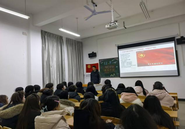 活动伊始,团支书结合史料,讲述了一二·九运动中青年们为救亡图存奔走呼号的故事,当讲到学生们冲破军警阻挠、走上街头的细节时,现场不少同学们眼中泛起了泪光。同学们深刻感受到在国家危亡之际,青年学子应该展现的爱国情怀和英勇担当。
