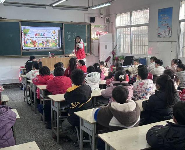 任职期间,耿美昊同学结合小学生特点,通过设计分层趣味英语课程提高了学生学习英语的热情。支教中,耿美昊同学严谨履职,不仅专注课堂,还协助学校教师整理素材、批改作业、组织英语打卡,其教学风格与服务态度获师生一致认可。她将专业理论灵活运用于实践,提升了课堂组织、学情把控等能力,更体会到基层教师的坚守,坚定了服务基层教育的初心。