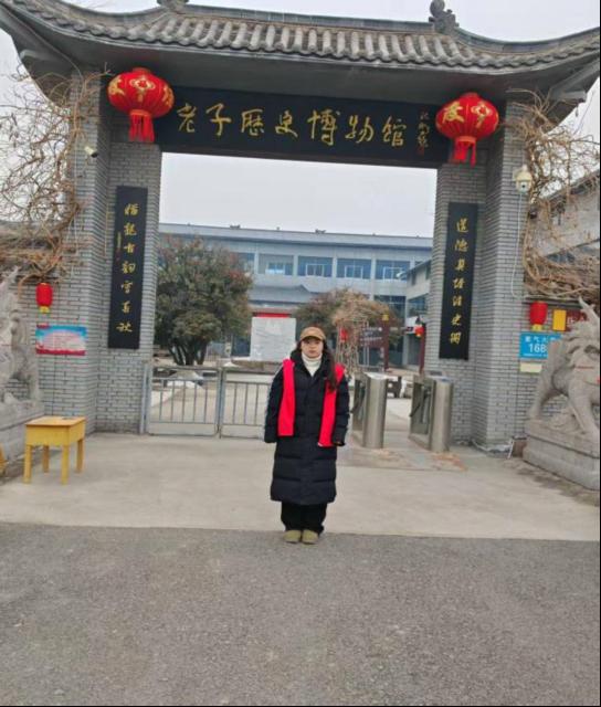 (文/李利雪 图/潘怡源)为推动中华优秀传统文化国际传播,让老子文化跨越语言边界走向世界,2026年1月25日,外国语学院组织开展的“中国故事・世界表达”系列志愿服务活动走进周口市鹿邑县老子历史博物馆,2024级英语(BK)03班潘怡源同学作为学院志愿代表,化身双语讲解员,在老子文化发源地开展志愿讲解服务,用专业的英语表达讲好道家文化故事,传递中华千年智慧。