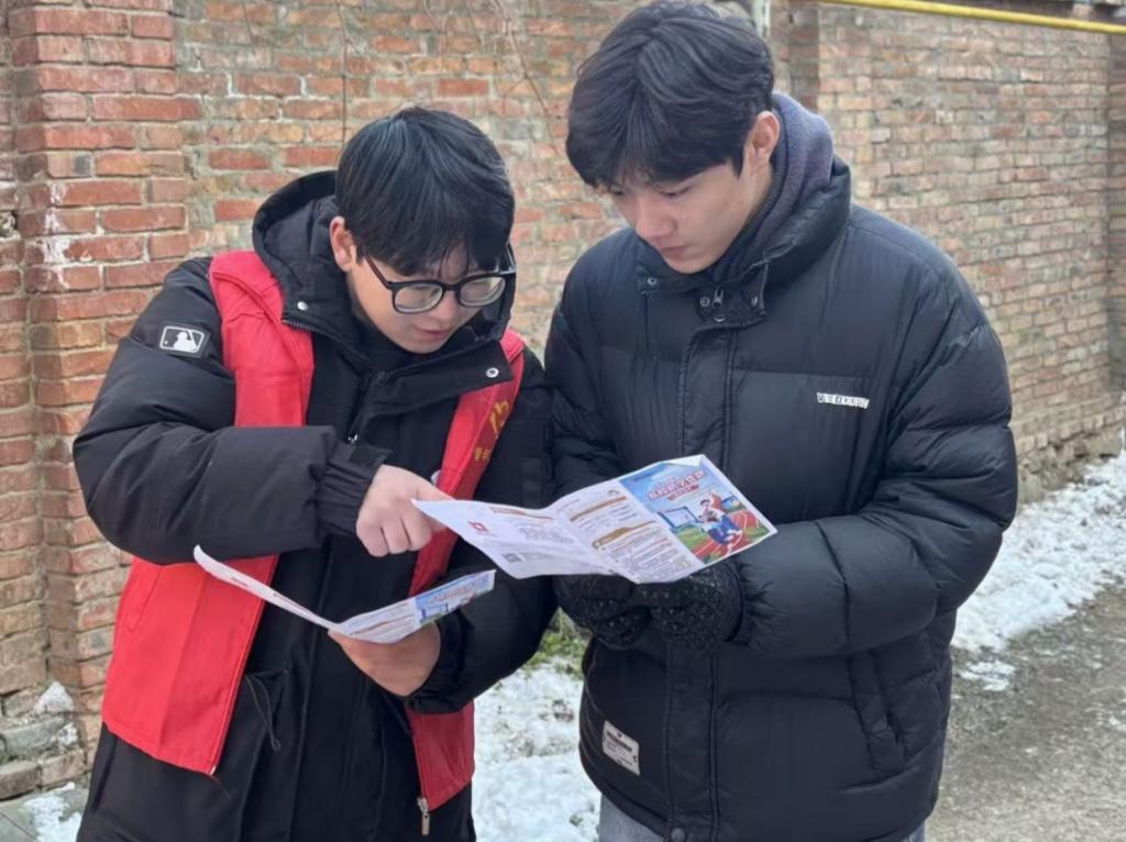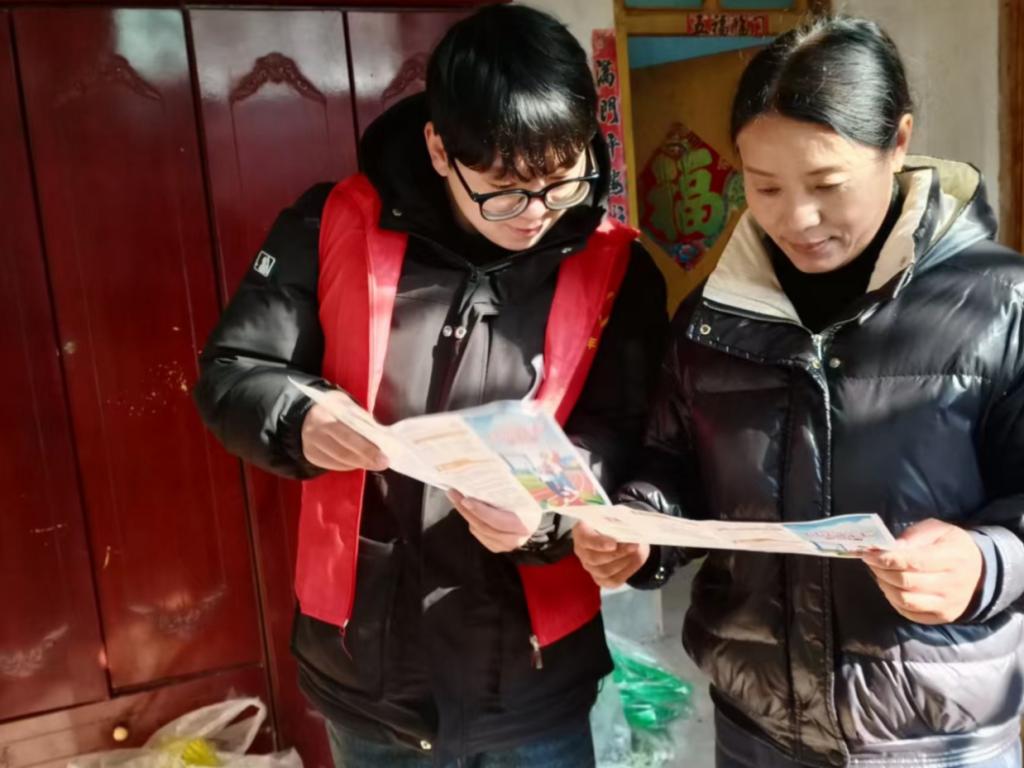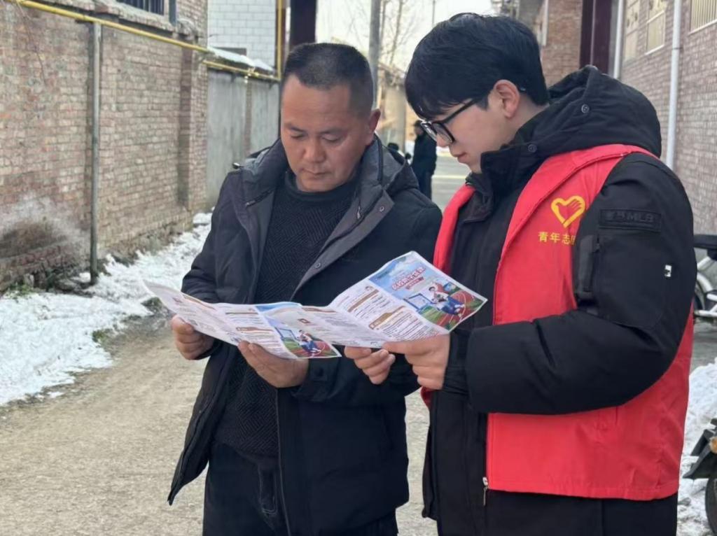 实践期间,杨一博同学身着青年志愿者红马甲,带着精心准备的政策宣传册,深入乡村街巷、走进村民家中,针对当地学生、学生家长及社区群众开展精准化、面对面的政策宣讲。