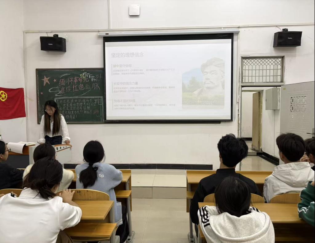 活动伊始,团支书带领同学们唱响团歌,在庄严氛围中致敬革命先烈。随后,同学们共同观看红色教育影片,重温革命先辈浴血奋战、坚守信仰的峥嵘岁月,深刻感悟先烈们为国奉献、无畏牺牲的崇高精神。