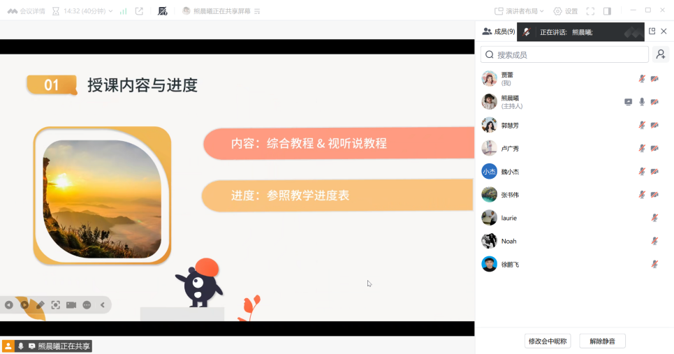 会上,全新版大学英语(IV)课程组组长熊晨曦围绕课程建设和教学准备作工作部署。她指出,开学前的教学准备是保障教学秩序的重要环节,要求课程组教师认真梳理教学内容,完善教案,提前磨课备课,确保新学期第一周教学顺利启动。