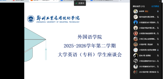 此次系列座谈会的顺利召开,进一步夯实了我院大学英语与专业英语教学工作基础,凝聚了育人共识。未来,学院将持续聚焦学生英语能力提升,常态化开展各类座谈交流活动,不断优化教学策略、丰富教学形式,为学生搭建更优质的英语学习平台,助力学子提升英语综合素养,为学校人才培养工作注入新动力。