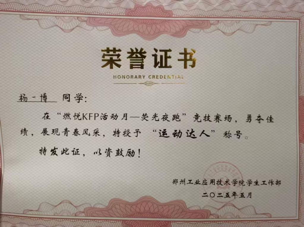 杨一博,男,2024级商务英语(BK)01班。该生自入学以来,勤奋刻苦,脚踏实地,积极向上,自觉遵守校纪校规,各方面表现突出。