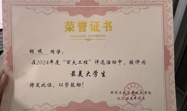 在工作上,作为班级班长,她尽职尽责。精心组织班级活动,及时传达学校学院通知,关心同学学习生活,是老师的得力助手,也是同学信赖的“主心骨”。在2024年度“百大工程”评选活动中被评为“最美大学生”,工作成效得到广泛认可。