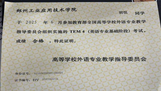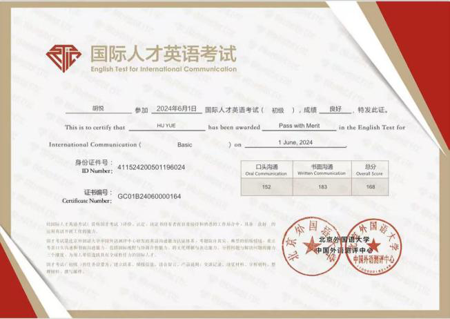 在学习上,她勤奋刻苦,成绩优异。曾获“国家励志奖学金”,在专业领域,她通过英语专业四级(TEM4)考试,国际人才英语考试,在2025年ICAN大学生创新创业大赛“亿学杯”跨境数字营销挑战赛校赛中斩获三等奖。