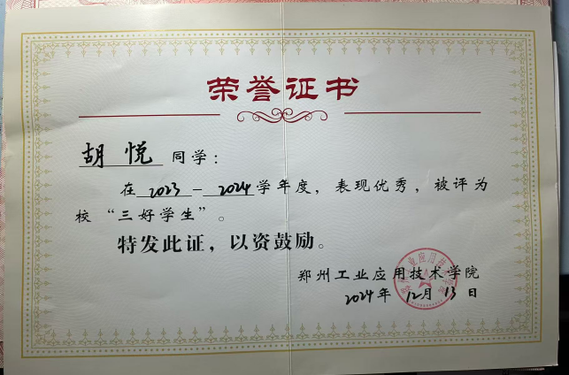 在思想上,她追求进步,以党员标准严格要求自己,积极学习党的理论知识,坚定理想信念。曾获“河南省三好学生”、“优秀共青团员”等荣誉称号,作为中共预备党员,时刻发挥先锋模范作用,在思想引领上为同学们树立标杆。
